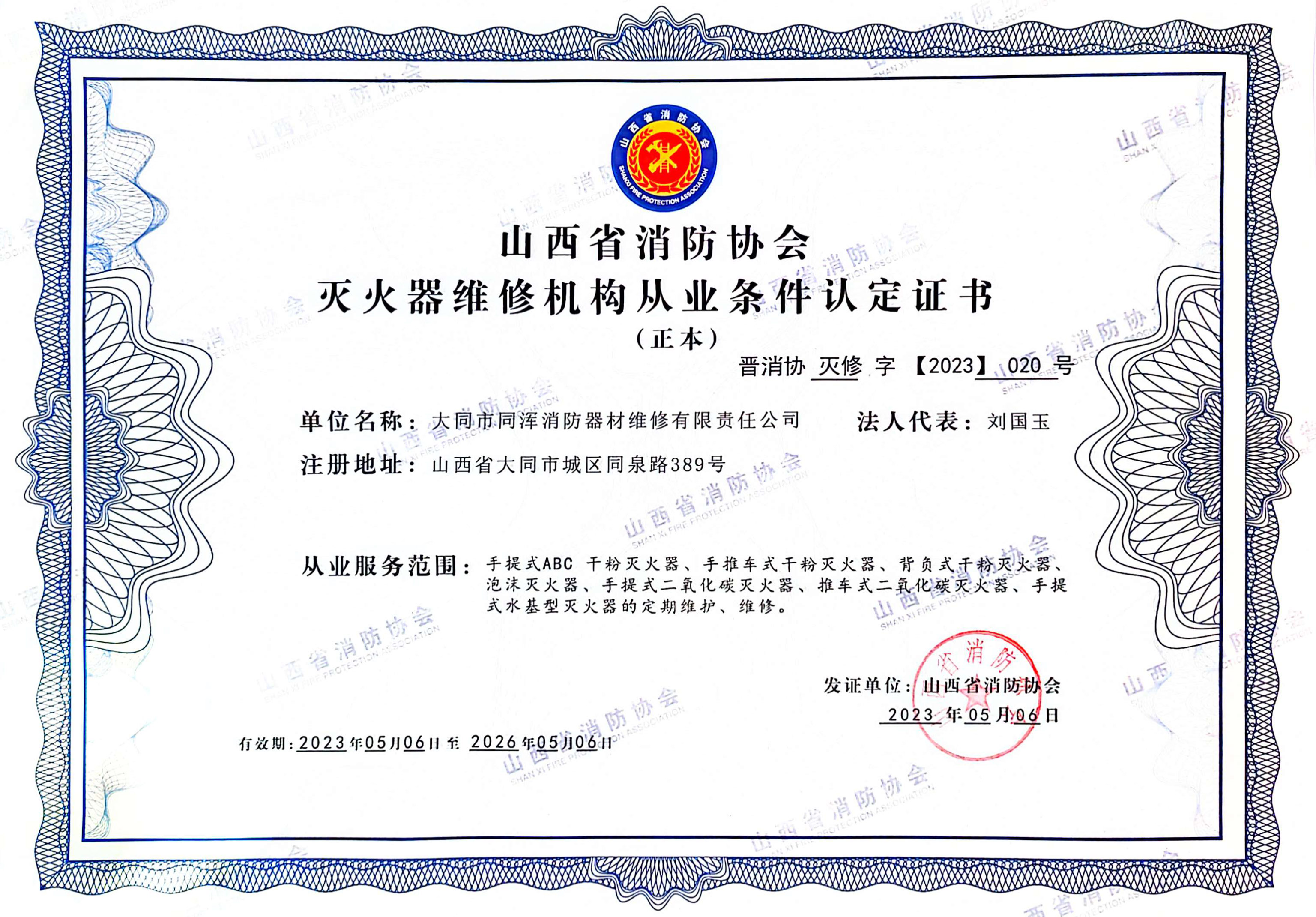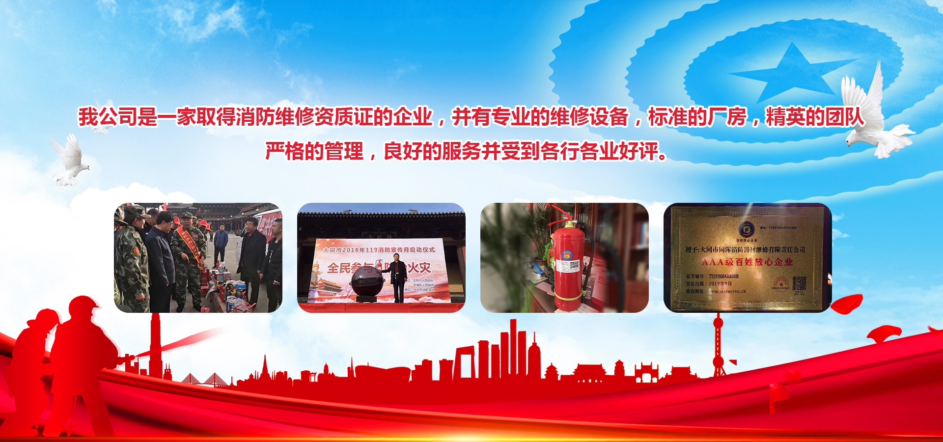 大同市同渾消防器材維修有限責任公司,位于大同市同泉路389號,始建于2000年,是公安部消防局定點銷售和維修的企業(yè),歷經多年的創(chuàng)建、發(fā)展和拼搏,現(xiàn)有多家消防器材廠商供應我公司,并有現(xiàn)代化維修設備,標準的廠房,嚴格的管理,優(yōu)良的設備,良好的服務并受到各行各業(yè)的好評。總經理劉國玉嚴格管理,嚴格要求,精益求精,認真負責,帶領團隊熱烈歡迎各界朋友顧客光臨。